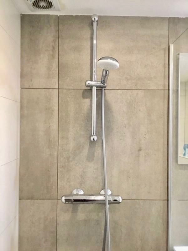 Stairs to second floor. Bright living room with modern open kitchen with dishwasher, 4-pit gas stove, freezer/fridge and storage space. 2 decent sized bedrooms. Storage room with washing machine. Bathroom with shower, toilet, sink and towel radiator. Double glazed and with laminate flooring throughout.