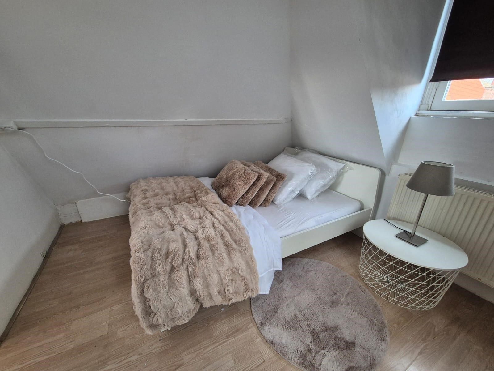 one bedroom apartment with open kitchen on the third floor. This is a bright apartment with laminate flooring throughout. It has a private decent kitchen with washing machine and bathroom. Perfect for one student who is looking for a good location for a reasonable price.