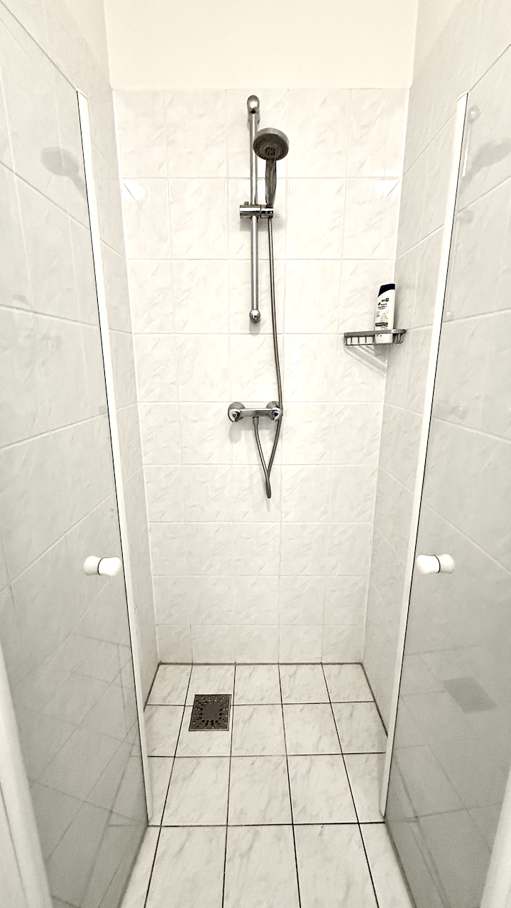 The master bedroom is spacious with a king size bed and large closet space. The second bedroom is about 10m2 and offers enough space for a closet and a double bed. The apartment features modern wooden floors, which cover the whole apartment and finishes the beautiful design of the place. The bathroom is located at the end of the hall next to the master bedroom and includes a spacious bath and separate shower.
