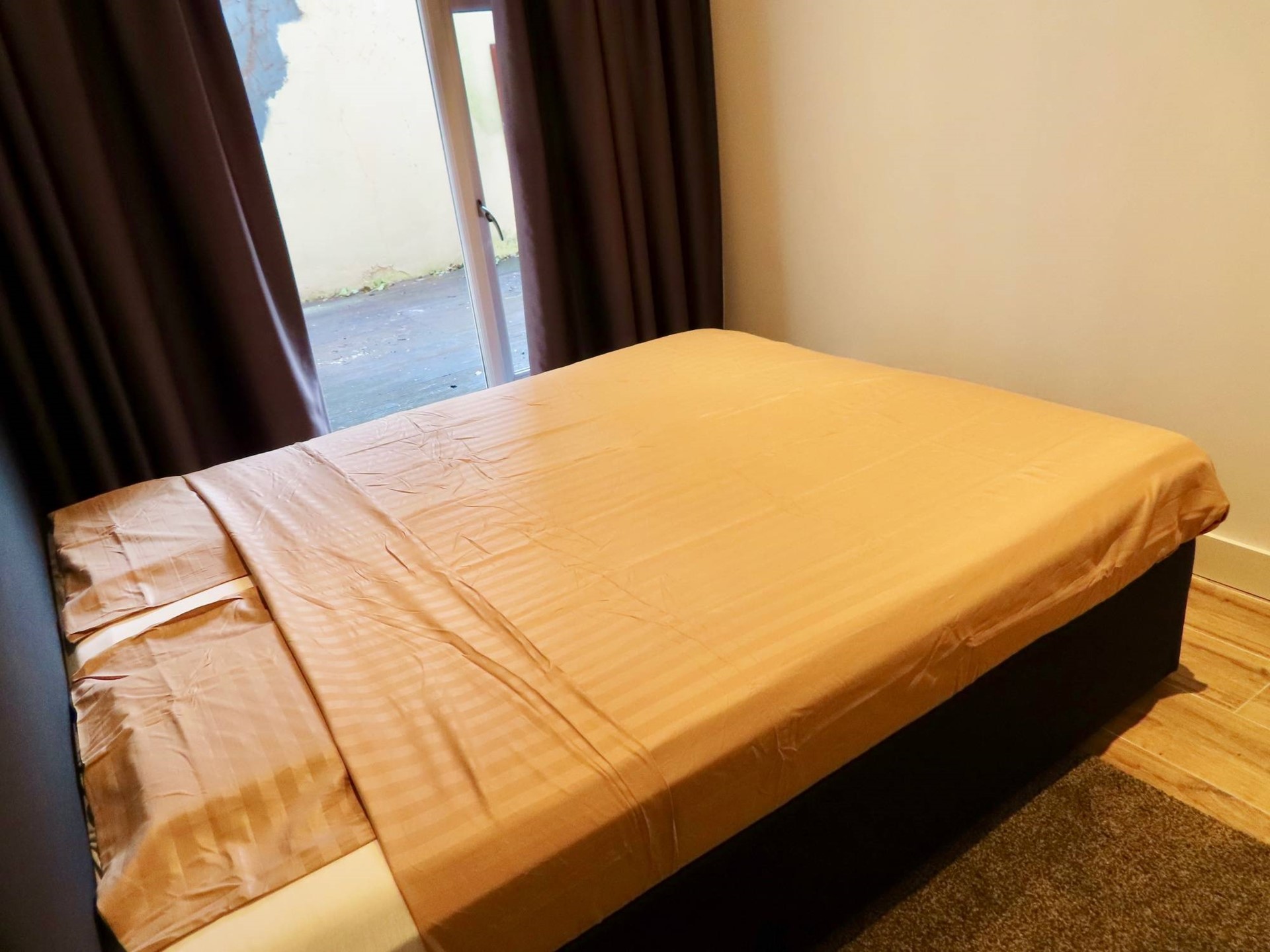 Entrance from hallway to the living room. Spacious living room with quality furniture and expansive windows, making it a bright and comfortable apartment. The Master bedroom with double bed and workspace with acces to the garden. Second bedroom with double bed, wardrobe and access to gaden. Fully fitted, modern kitchen with gas stove, fridge / freezer, oven / microwave and dishwasher. Bathroom with walk in shower, washing machine and toilet. Sunny garden. Laminate (PVC) flooring, double glazed and floor heating & cooling. This apartment is sustainably focussed.