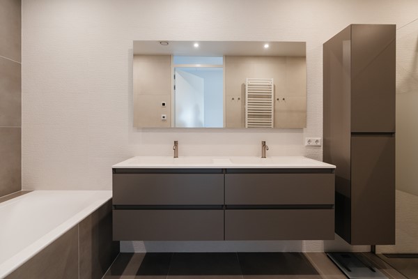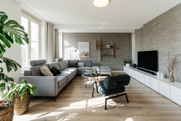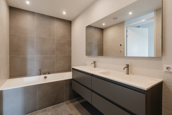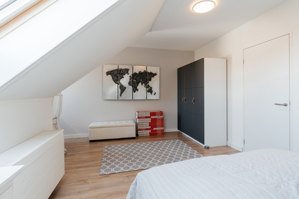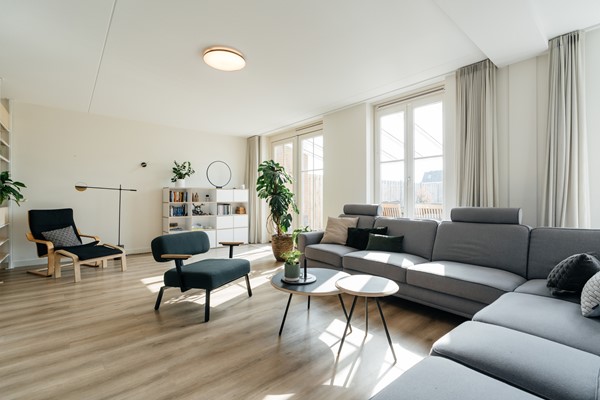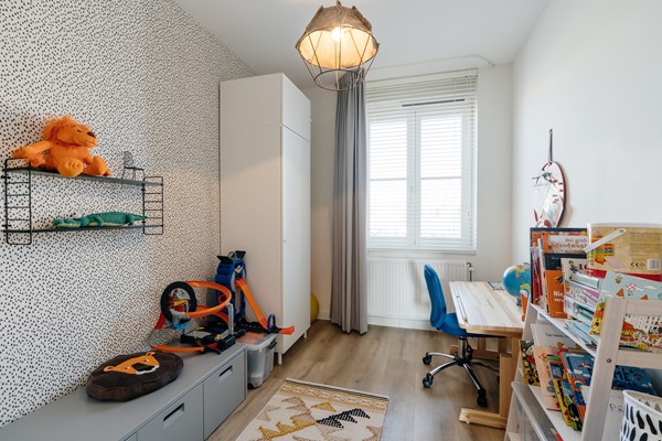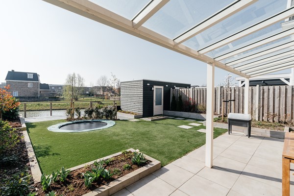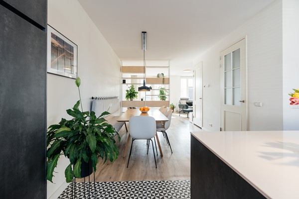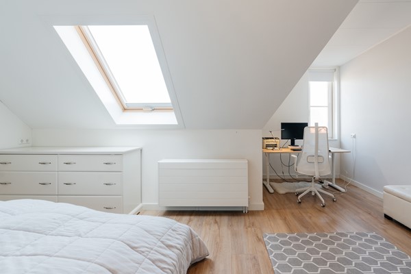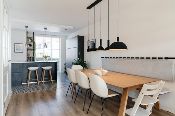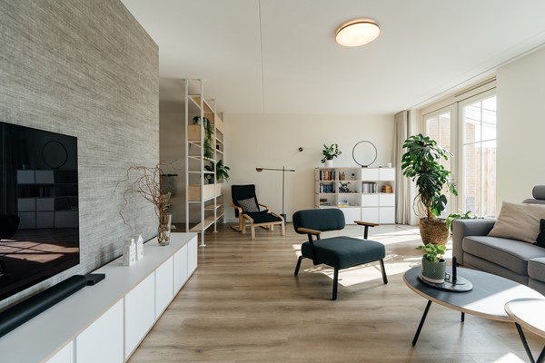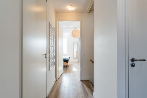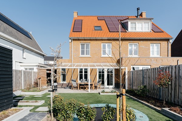 A two under one roof home with a private parking and garden in front of the house. Entrance to a hallway with toilet and doors to the spacious and sunny living room with underfloor heating and a stylish custombuilt kitchen with kitchenisland. High quality appliances and lot's of storage space. The living room can be divided in a dinning area and seating area. From the seating area French doors to the spacious garden of approx. 140m2. The garden is situated along a small canal. Stairs to the 1st floor with 3 spacious bedrooms. A bathroom with bath, walk-in shower, towel radiator and a double sink. Separate toilet. Stairs to the 2nd floor with 2 more spacious bedrooms as well as a bathroom with washing machine, walk-in shower and toilet. Underfloor heating in the living room and bathrooms and radiators in the the other rooms, centrally heated and fully insulated and ventilated.